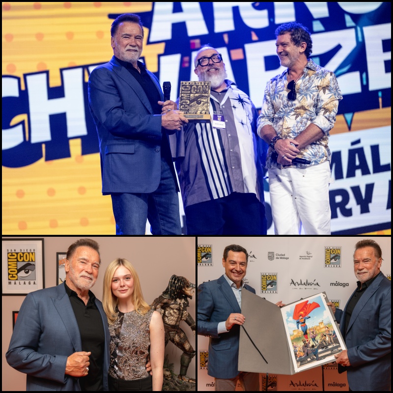 Arnold Schwarzenegger recibió el Premio de Honor de manos del actor malagueño, Antonio Banderas. Estuvieron también el último día el presidente de DC Cómics, Jim Lee; los ganadores de múltiples premios Goya JA Bayona y Álex de la Iglesia o las actrices Elle Fa∫ning, Belén Rueda y Ester Exposito. El actor Jared Leto, ganador de un Premio Oscar(c), presentaba en primicia mundial imágenes de “Tron: Ares”.